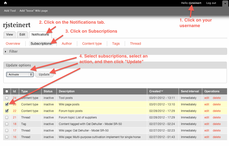 Subscribe via Email to an individual Tool's Forum and Wiki