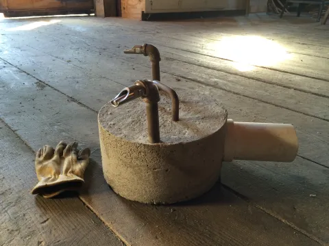 Don't forget a handle. I made my 1/2" brass set up a T with arms coming up and hooking for pig nipple screw in. You can get them at Agway or TSC. Don't use iron pipe, I've heard it's not good for potable water.