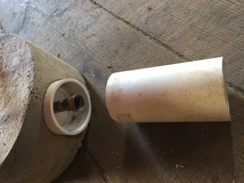 You'll need a 1/2" female pipe thread to 3/4" female hose thread piece to attach hose inside the removable PVC part. I used a PVC cap with 1/2" hole drilled for pipe cemented in and then just sawed off a piece that I can take on and off so I can get to hose attachment, otherwise pigs eat the hose attachment.